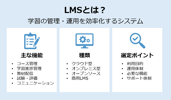 An LMS (Learning Management System) is a system designed to efficiently manage and operate learning and training.