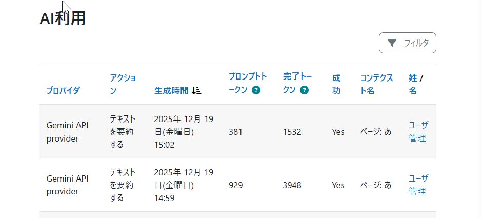 Moodle integrates with AI such as ChatGPT and Gemini using API keys. While AI usage is convenient, usage fees accumulate according to the processing performed. Each time you use features like text generation, page summarization, or AI explanations, API usage fees from OpenAI or Google Gemini are incurred. If you use these features without limits, the monthly API costs will naturally increase.