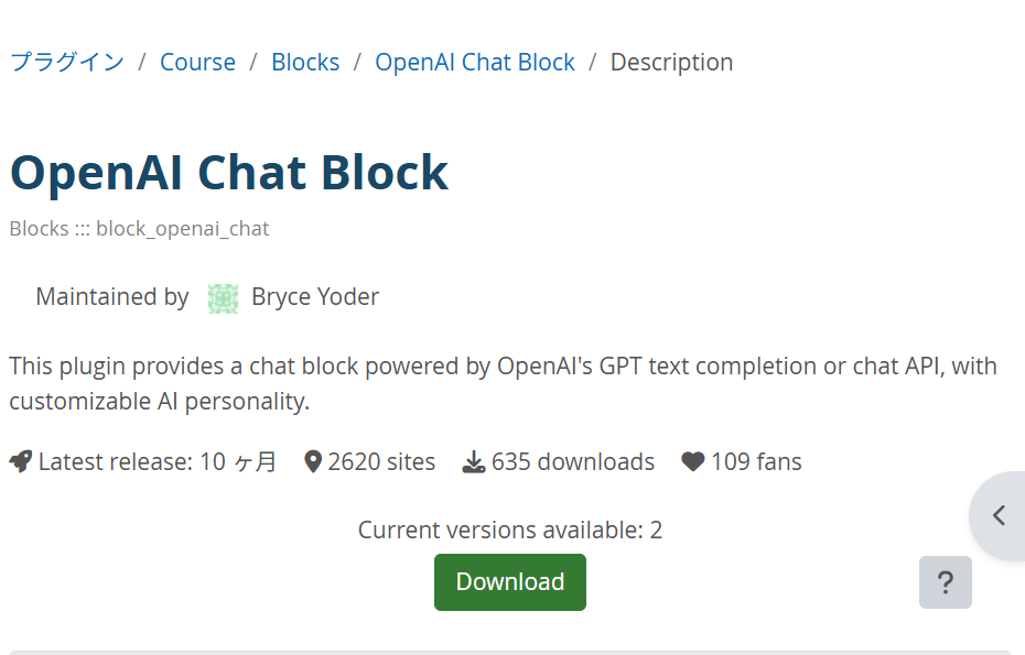 Download URL: https://moodle.org/plugins/block_openai_chat