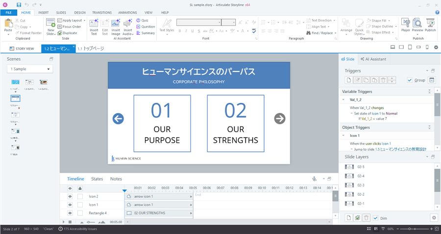 ヒューマンサイエンスで作成するeラーニング教材の多くで、Articulate 360を使用しています。
