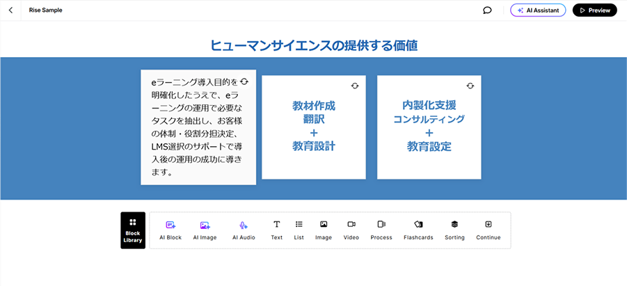 ・PowerPoint原稿の内容を、Web型のRiseコンテンツに再構築